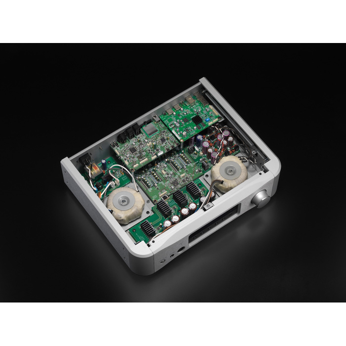 N-05XEは、最小のシステム構成で、最高の音質をお届けするために設計されたネットワークDACプリアンプです。光ネットワーク接続対応G4ネットワーク・エンジン、次世代のG2ディスクリートDAC、Grandiosoモデル直系のデュアルバランス・プリアンプに加え、ヘッドホンアンプも搭載。「XE」モデルは、定評のある機能性はそのままに、全ての回路コンポーネントを新規設計でブラッシュアップ。磨き抜かれたESOTERICシグネチャーサウンドを心ゆくまでお楽しみください。Master Sound Discrete DAC G2ESOTERIC独自の「Master Sound Discrete DAC G2」は、吟味を重ねたディスクリート部品で回路を組み上げたFPGAベースのマルチレベルΔΣ(デルタシグマ)D/Aコンバーターです。汎用DAC ICでは実現不可能な音楽の「躍動感」、「エネルギー」の完全再現を目指し、1チャンネル当たり16エレメントの大規模な回路構成により音楽のエネルギーを余さずピュアに出力します。第4世代「ESOTERIC Network Engine G4」搭載N-05XEは、光ネットワーク接続対応のSFPポートを装備した第4世代のネットワーク・エンジン「ESOTERIC Network Engine G4」を搭載。大容量RAMとパワフルなCPUにより、先進の処理能力を誇ります。電源部はオーディオ回路から完全に独立したネットワーク専用大型リニア電源を搭載。デュアルモノ・デュアルバランス・プリアンプオーディオ信号の左右、正負を独立させた合計8回路の高音質デュアルモノ・デュアルバランス構成のアッテネーター回路を採用。チャンネルセパレーションと位相特性に優れたクリアな音質を獲得しています。デュアルモノ・パラレル・シングルエンド・ヘッドホンアンプN-05XEは、新設計の「デュアルモノ・パラレル・シングルエンド・ヘッドホンアンプ」を搭載。出力は4pin XLR出力、6.3mmステレオ標準出力の2系統を装備。1,200mW(32Ω負荷)というハイパワーで、ハイエンドヘッドホンも余裕をもって力強くドライブ。高音質な電流伝送「ES-LINK Analog」入出力を装備ESOTERIC独自の伝送方式「ES-LINK Analog」入出力を装備。強力な電流供給能力を誇るHCLDバッファー回路の高性能を生かした電流伝送方式により、信号経路のインピーダンスの影響を受けにくく、信号をピュアに力強く伝送。主な仕様■ネットワーク部PCMロスレス:FLAC、ALAC、WAV、AIFF、MQADSDロスレス:DSF、DSDIFF(DFF)、DoP圧縮オーディオ:MP3、AACETHERNET端子:1系統(1000BASE-T)SFP端子:1系統(1000BASE-T / -LX / -SX)USB DRIVE端子:TYPE-A ×1、TYPE-C ×1対応ファイルシステム:FAT32、exFAT、NTFS対応サンプリング周波数:PCM:44.1〜768kHz、16bit / 24bit / 32bitDSD:2.8MHz、5.6MHz、11.2MHz、22.5MHz■Bluetooth部Bluetoothバージョン:4.2対応A2DPコーデック:LDAC、LHDC、aptX HD、aptX、AAC、SBCペアリングメモリ数:最大8■ヘッドホン出力4pin XLR:16.3mmステレオ標準:1実用最大出力:1,200mW + 1,200mW(32Ω負荷)適合負荷インピーダンス:16〜600Ω■一般電源:AC100V、50/60Hz消費電力:30W(スタンバイ時:0.3W)外形寸法:445 × 131 × 377mm(突起部含む)質量:13.6kg