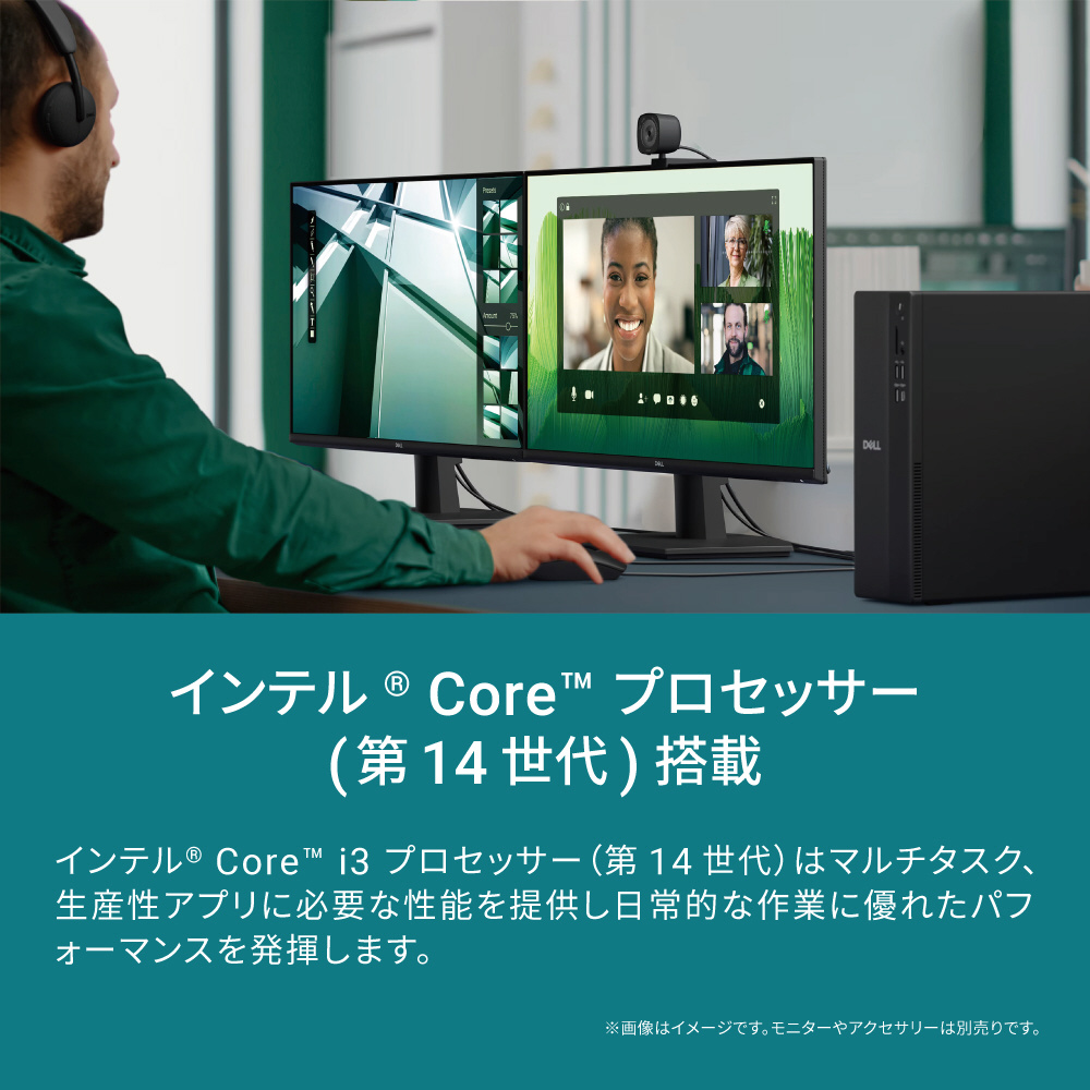 インテル Coreプロセッサー搭載の、小さなワークスペースにも最適なDellスリム。細部まで洗練された流線形のモダンなデザインは、あらゆる家庭やオフィスにスタイリッシュなアクセントとなります。