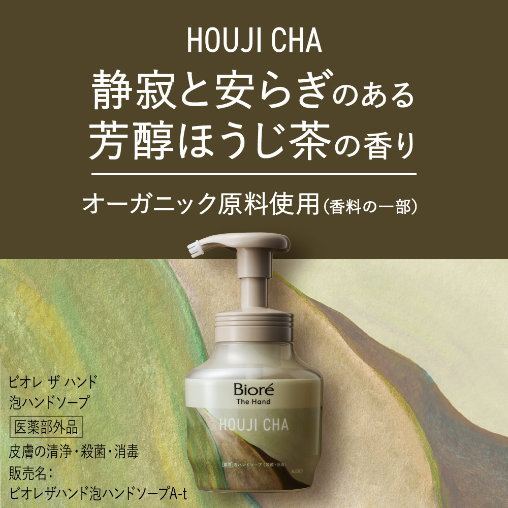 丁寧な暮らしに溶け込む、こだわりのハンドソープ。香り立ち生クリーム泡。(医薬部外品) ●オーガニック原料使用(香料の一部) ●素肌と同じ弱酸性 ●ヒアルロン酸・グリセリン(保湿成分)配合 ●超微細な生クリーム泡を作る3層メッシュポンプ採用 ●殺菌成分配合 ●汚れ、ウイルス・細菌を除去 ●こだわりの暮らしに 静寂と安らぎのある芳醇ほうじ茶の香り