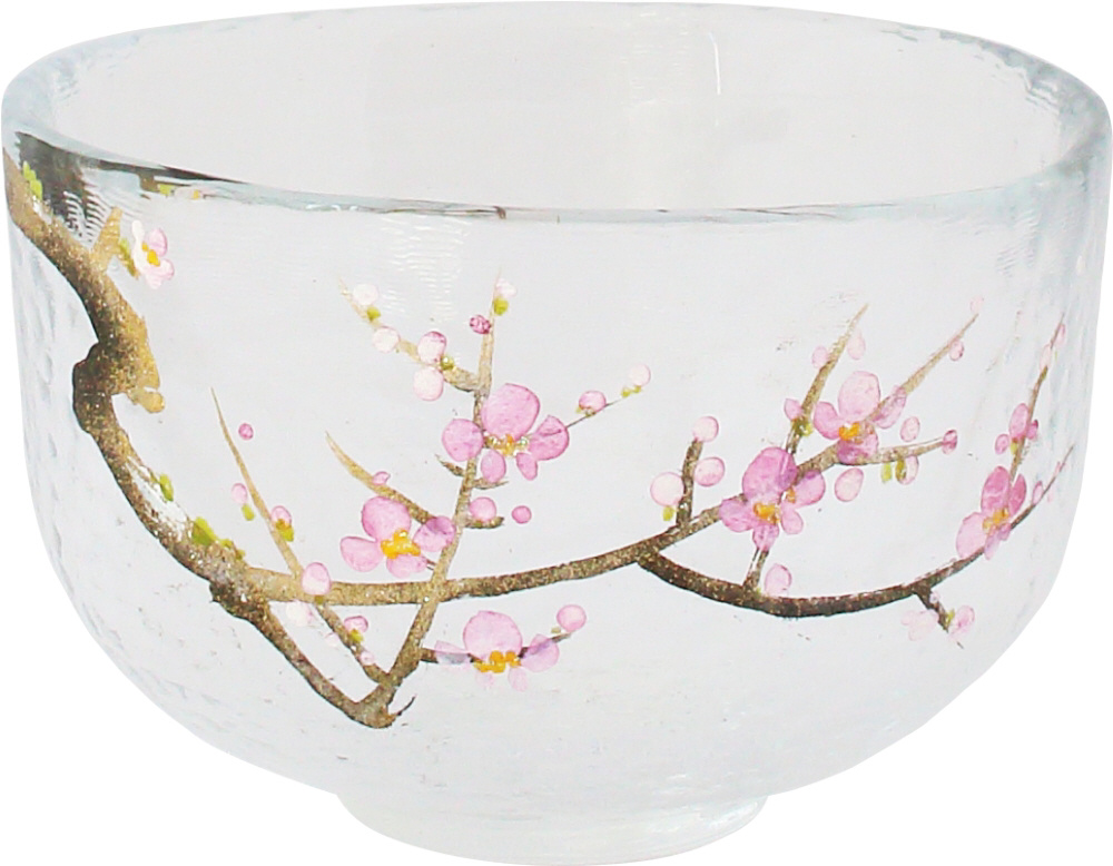 江戸硝子 手描絵付 耐熱抹茶椀 梅