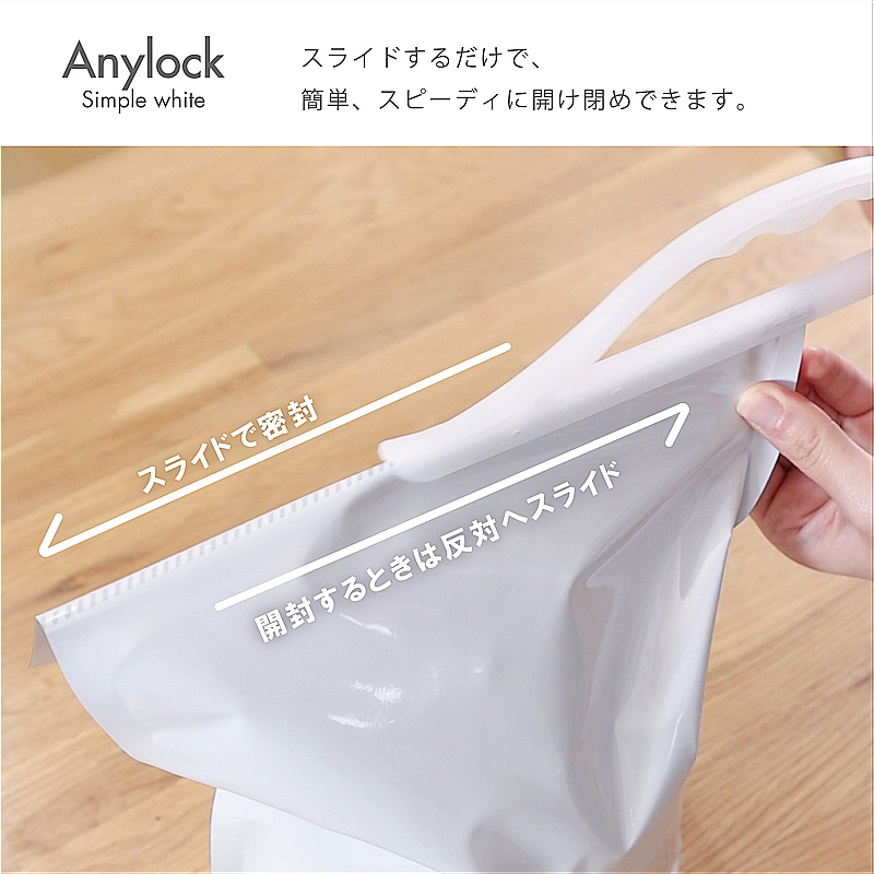 袋を折り曲げて、スライドさせるだけで簡単・スピーディに袋を密封することができます。