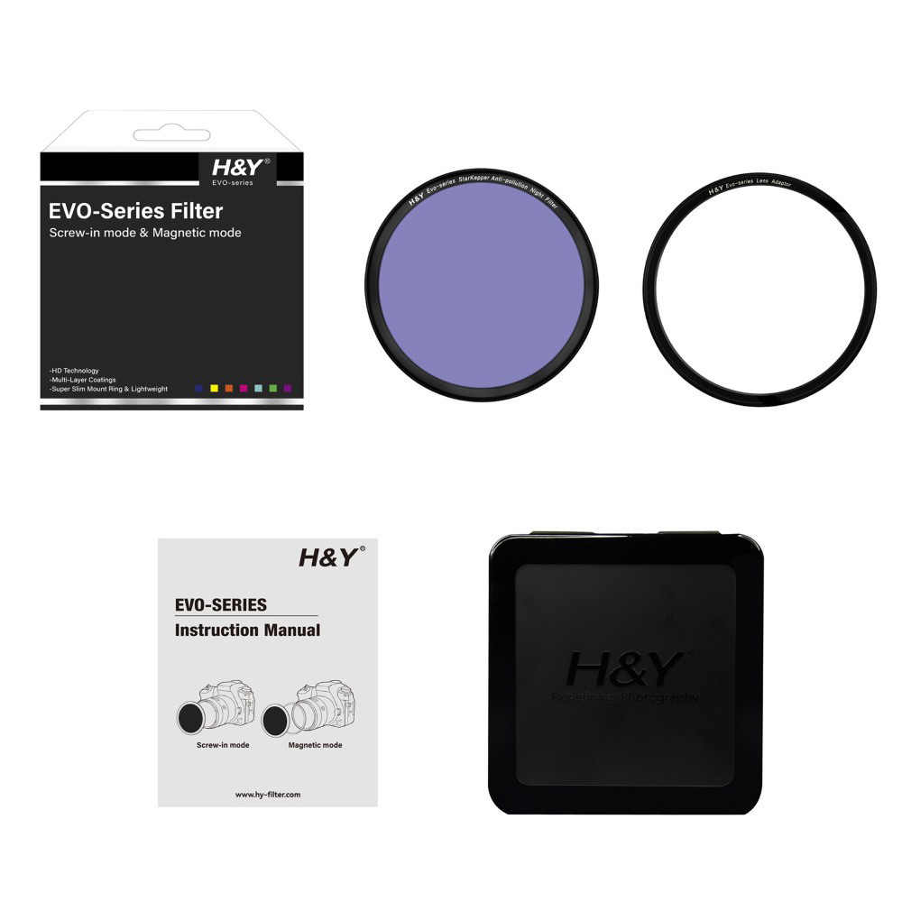 ■EVO-series Night Filter Kit(ナイト フィルターキット)は、ねじ込み式とマグネット式の両方に対応するEVOシステムの光害カットフィルターです。