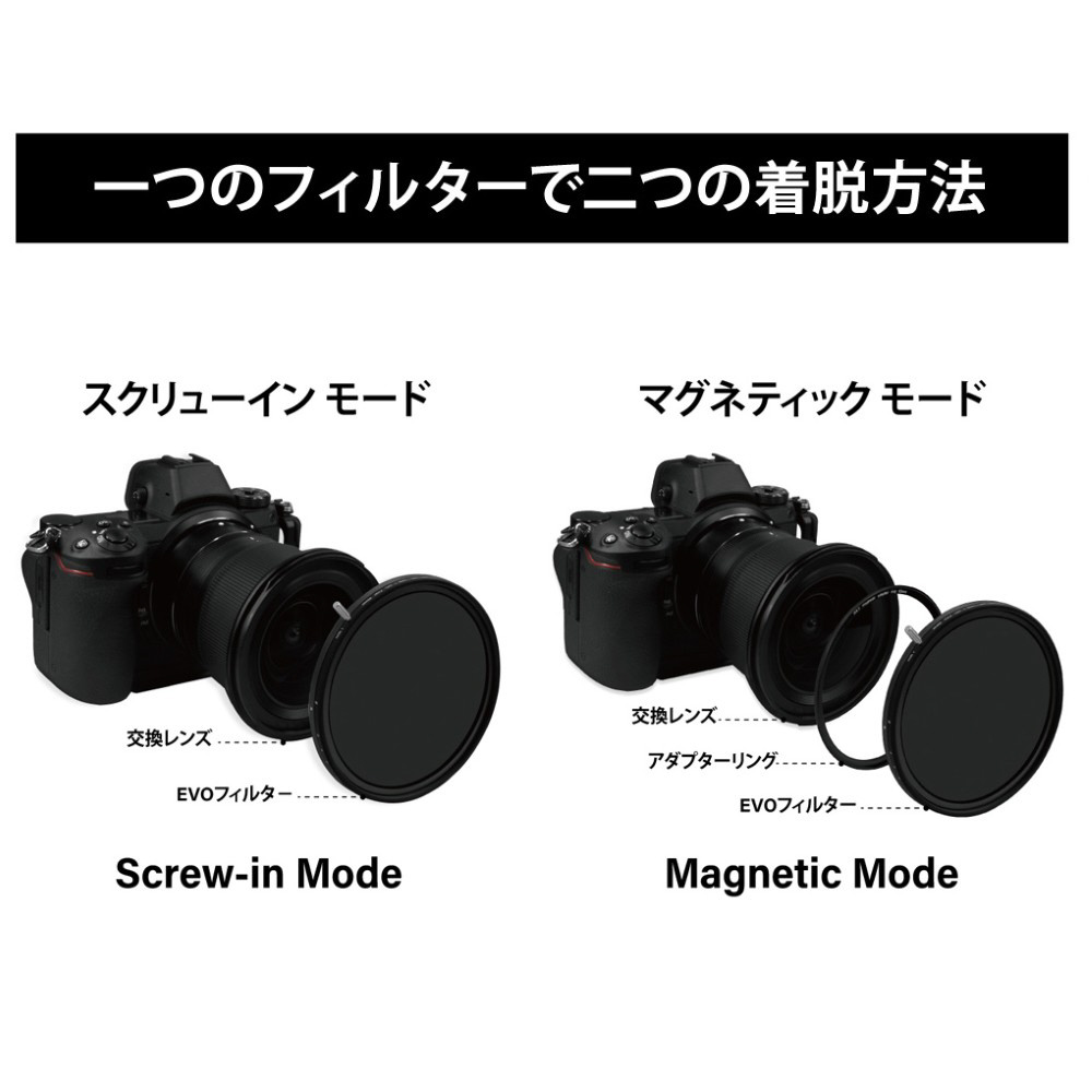 ■同サイズのEVOシリーズフィルターとのマグネット式重ね付けに対応しています。