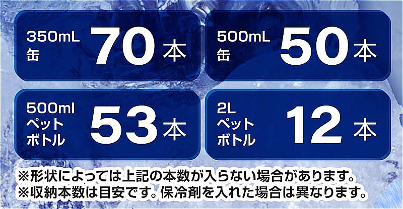 350ml缶は70本、500ml缶は50本、500mlペットボトルは53本、