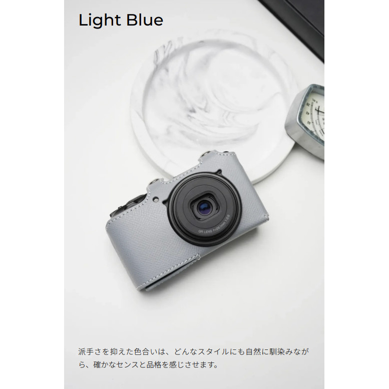 大切なカメラを保護しつつ、このカメラ本来の携帯性・速写性を損なわない、軽量でミニマルなレザーケースです。