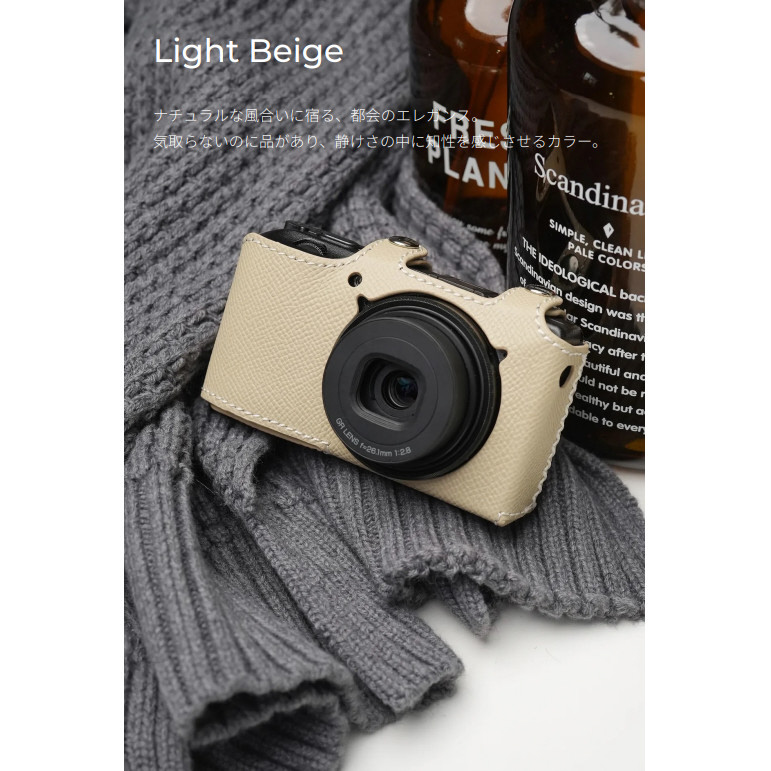 大切なカメラを保護しつつ、このカメラ本来の携帯性・速写性を損なわない、軽量でミニマルなレザーケースです。
