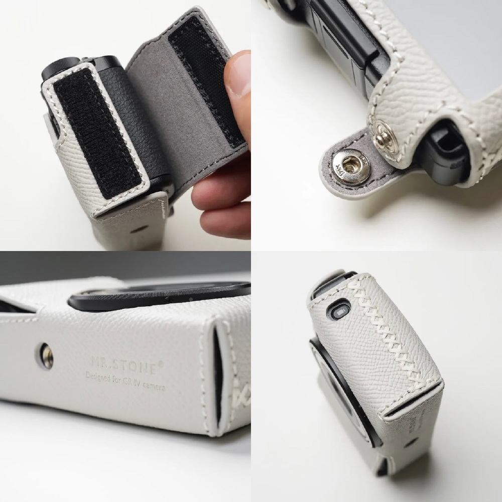 少しでも軽くするために?属ベースは使わず、わずか24gのレザーでGRを包み込むことで、カメラ本来の携帯性を維持します。
