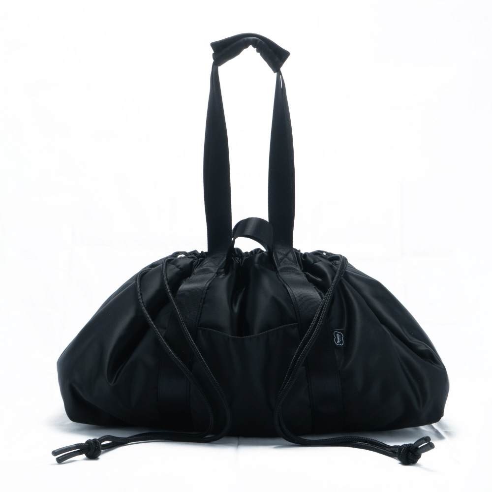 左右のコードを引くだけで“巾着型” へと瞬時に変化するBAG が誕生。