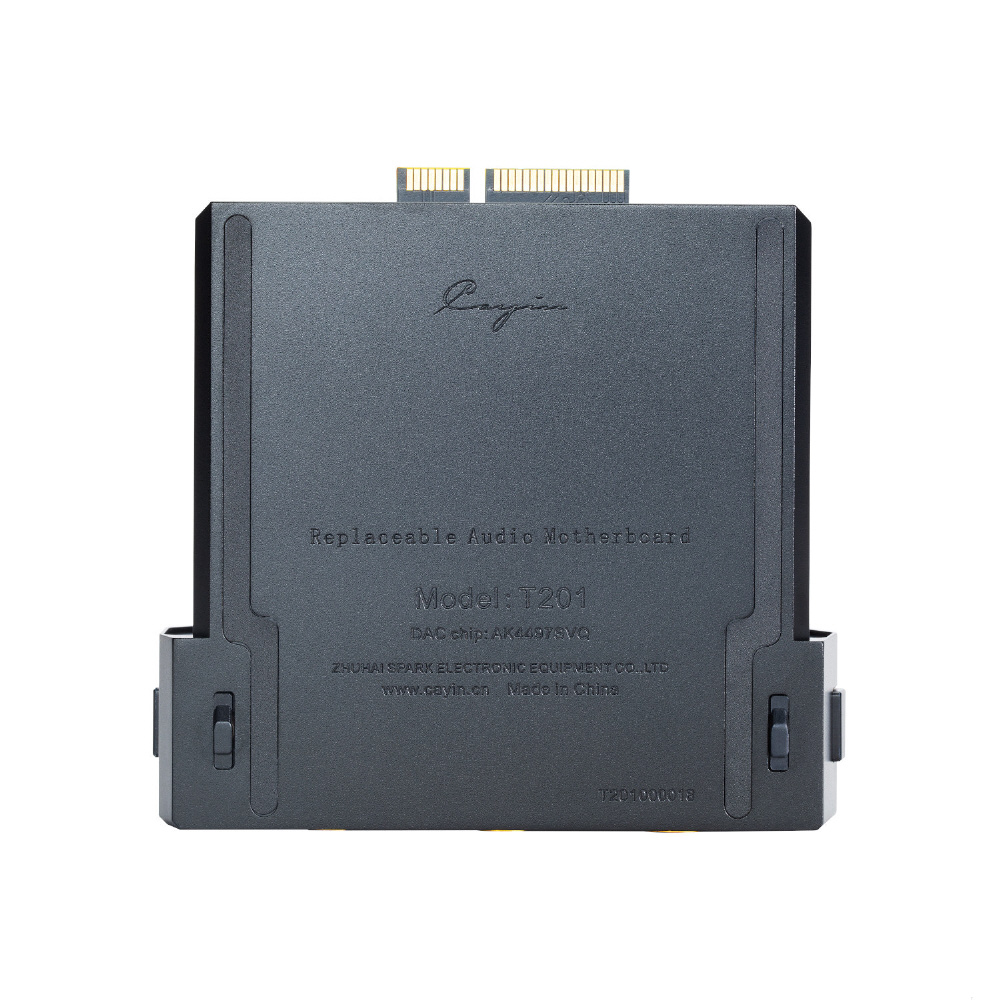 Cayin N6iii T201は、交換可能な第2世代オーディオマザーボードを採用。 ミリタリーグレードのNOS真空管 JAN6418 を2基搭載し、真空管/ソリッドステートの音色切替に対応します。 DACにはフラッグシップ AK4497S を採用し、768kHz PCM/DSD512までのハイレゾ再生をサポート。 3.5mm/4.4mm出力とPO・LO・PREモードにより、ヘッドホンから外部アンプ接続まで幅広く対応します。