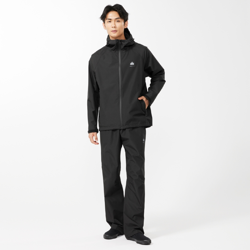 アウトドアから日常までデイリーに活躍する、高耐水透湿素材を使用した「ジャケット」と「パンツ」の上下セット。