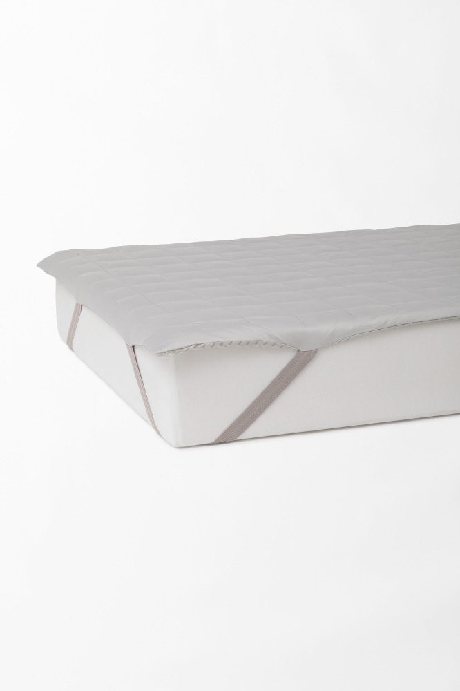四隅のゴムバンドで、布団にもマットレスにも簡単に装着。寝具の種類を選ばず、しっかりフィットします。
