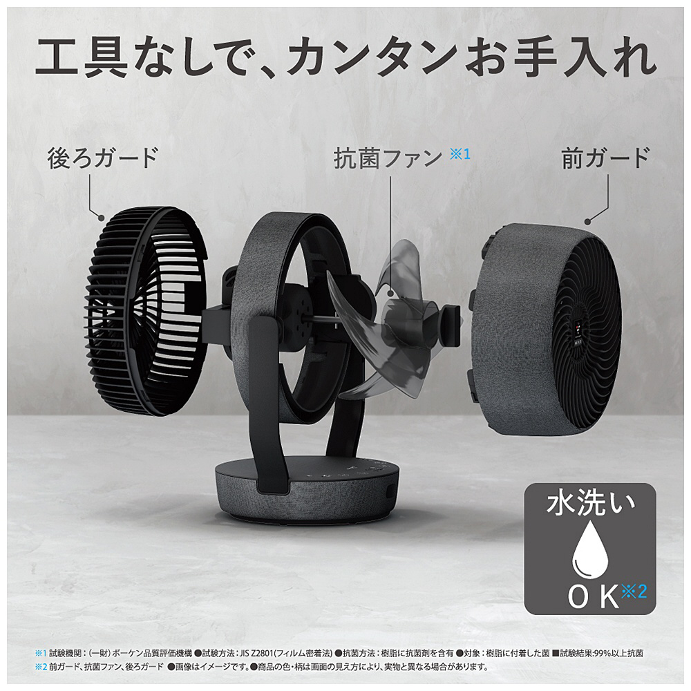 工具を使わず手だけで前ガード、後ろガード、ファンを取り外せます。取り外したパーツは水洗いができ、いつでも清潔な状態を保てます。