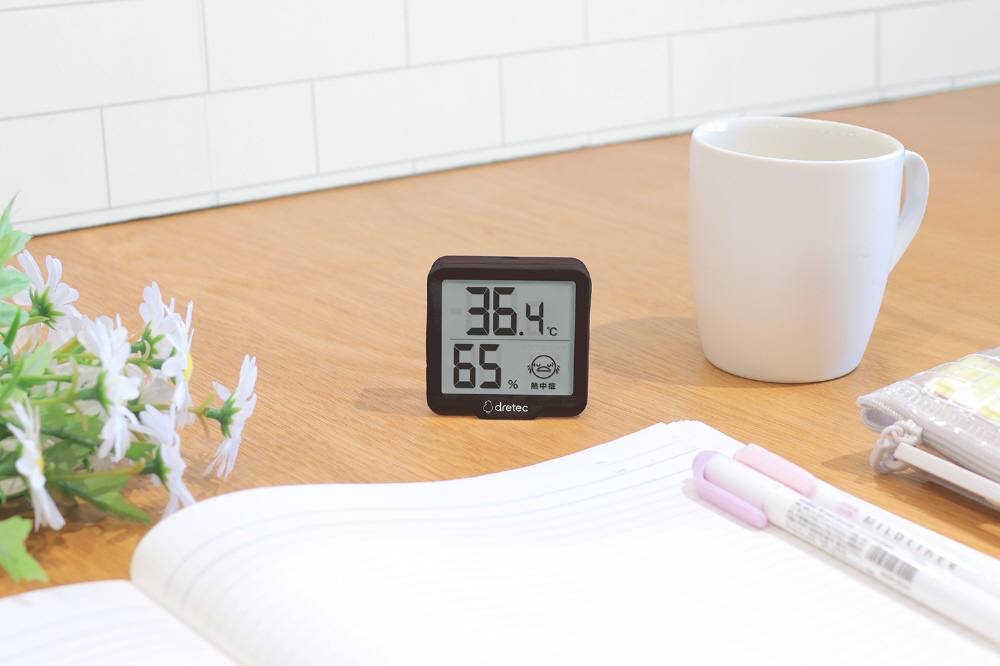 じゃまにならないミニサイズ。表情で熱中症・インフルエンザの危険度の目安がわかる。