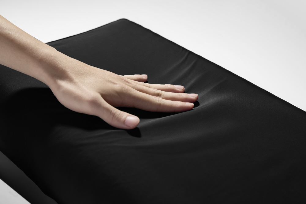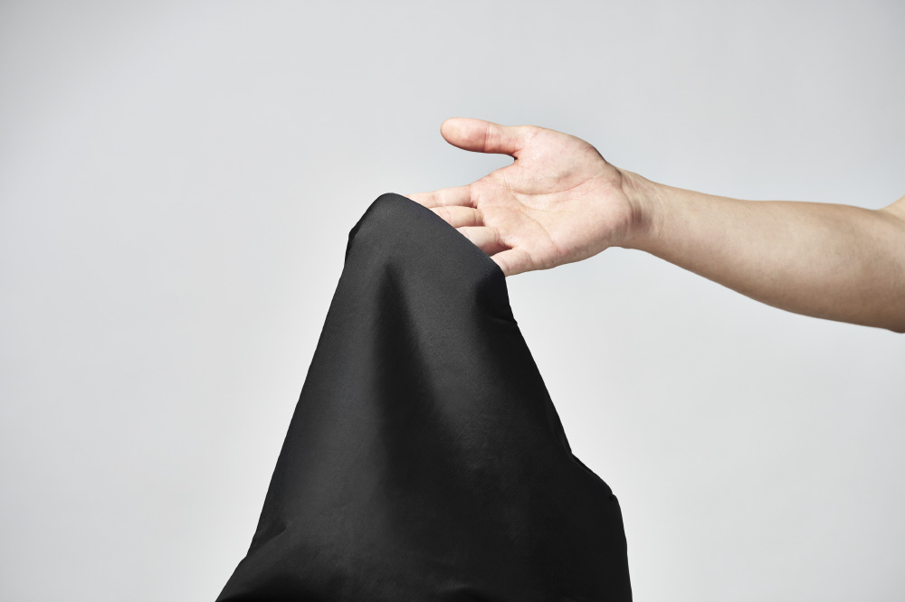 冷感素材「アイスドレープファイバー(TM)」は、ナイロンとポリウレタンの合成繊維。