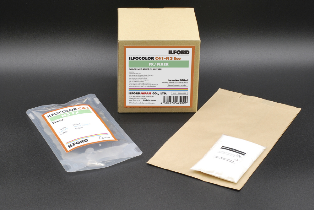 イルフォカラーC41エコシリーズケミカルは、C41処理用のカラーネガフィルム現像処理用ケミカルです。発色現像液、漂白液、定着液、安定液が、それぞれ小分けになった無駄の出づらい使い切りタイプとなります。各製品とも600ml用で、LAB-BOXやパターソンPTP115などの小型リールタンク用として最適です。