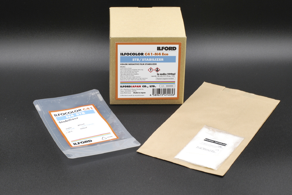 イルフォカラーC41エコシリーズケミカルは、C41処理用のカラーネガフィルム現像処理用ケミカルです。発色現像液、漂白液、定着液、安定液が、それぞれ小分けになった無駄の出づらい使い切りタイプとなります。各製品とも600ml用で、LAB-BOXやパターソンPTP115などの小型リールタンク用として最適です。