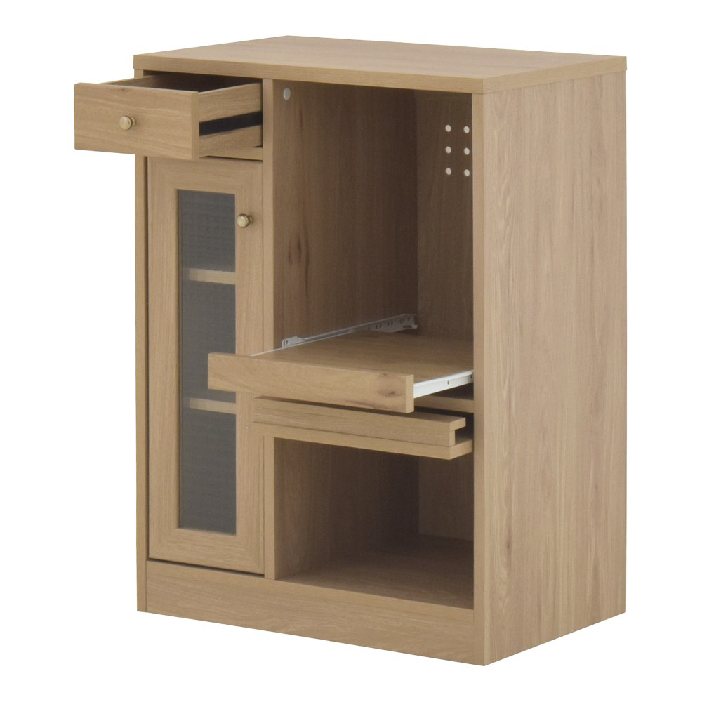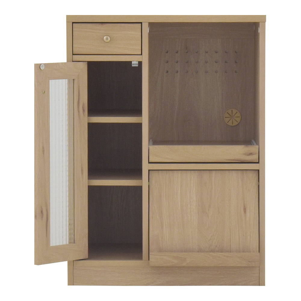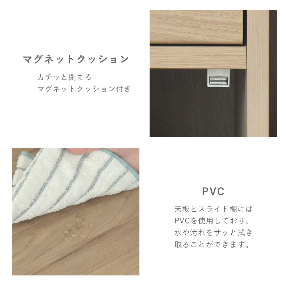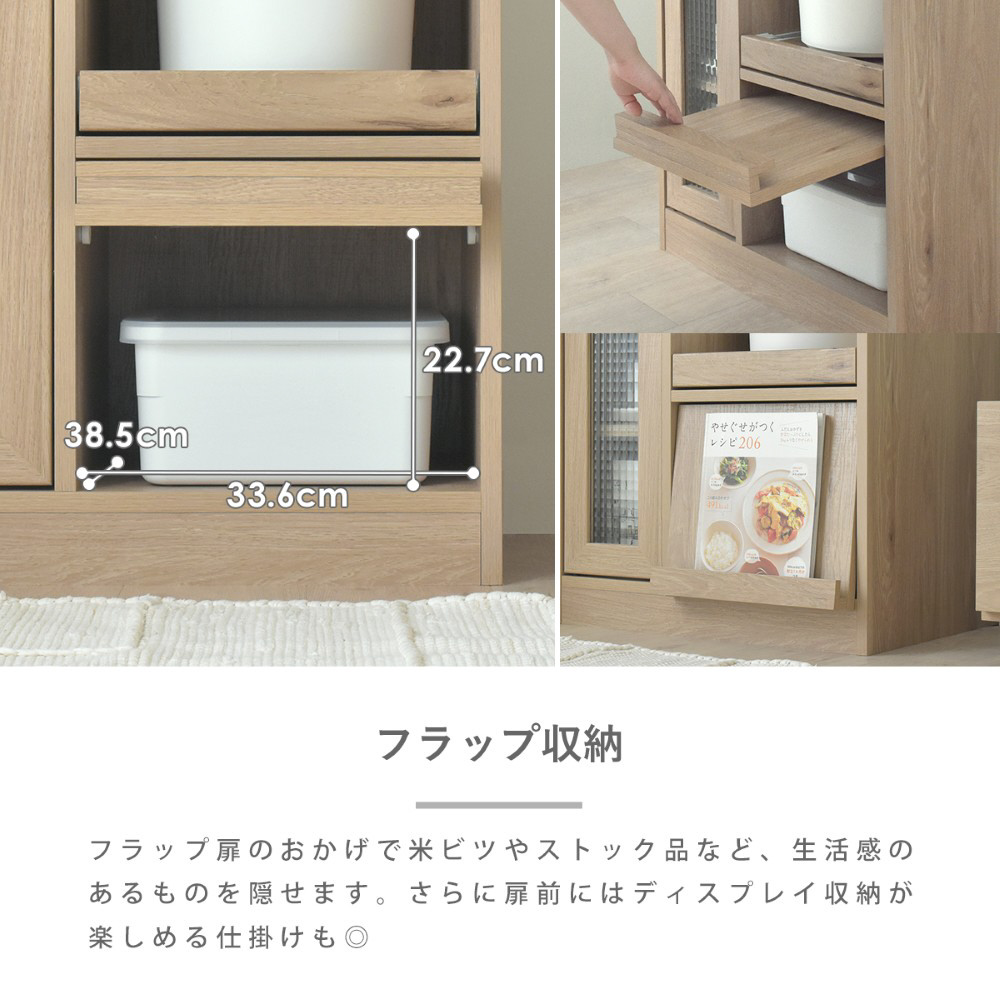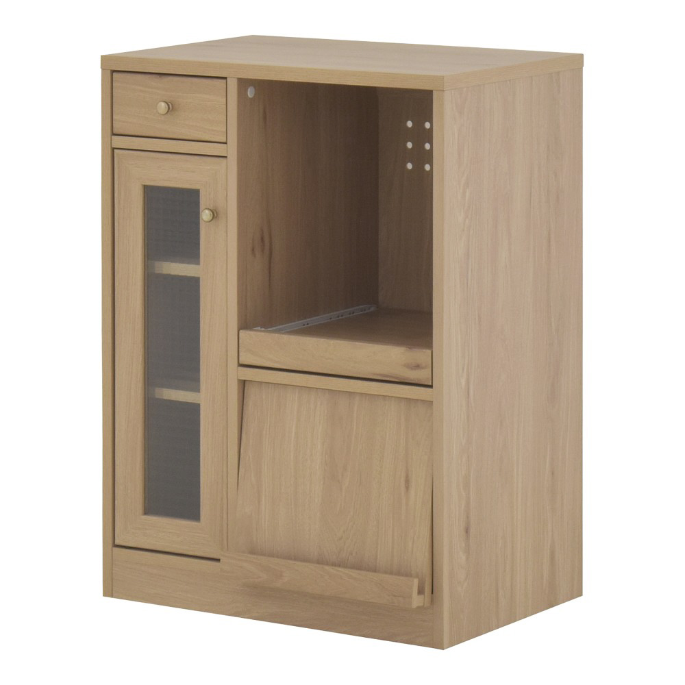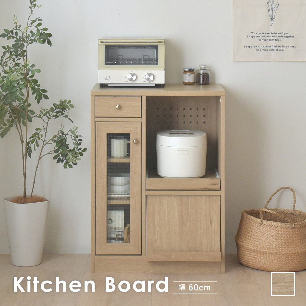 幅60cm×高さ82cmというコンパクト設計ながらも抜群の収納力を誇るレンジボード。スペースに余裕のないワンルームなどでもすっきり置けて、デザインも使い勝手も抜群な一台です。