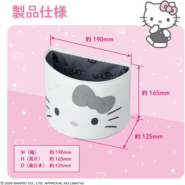お車の床に置いて使用するハローキティのフェイス型ダストボックスです。
