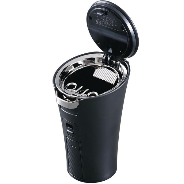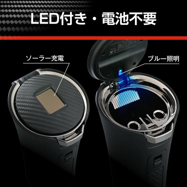 暗くなると点灯、明るくなると消灯するオートライト機能のブルーLED照明がついたソーラータイプの灰皿です。