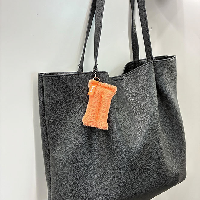 ストラップ付きのminiスポンジ。ストラップを外してスポンジとしても使用可能。ブラシスポンジの品質そのままminiサイズのスポンジです。