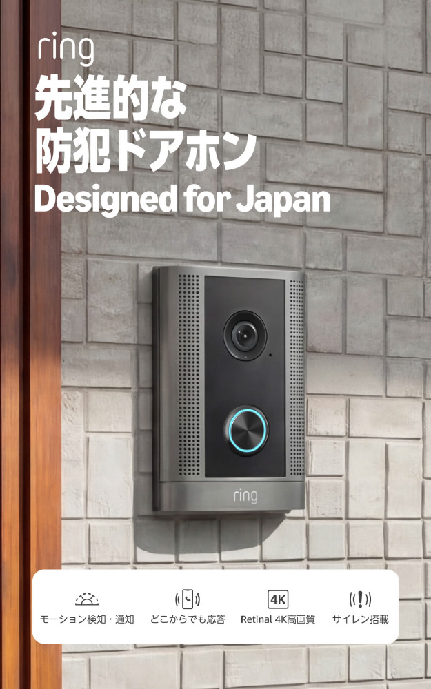 モーション検知・リアルタイム通知・ライブ映像・双方向音声により、チャイムが鳴る前から玄関先の人や状況を把握でき、スマートフォンやタブレット、Alexa搭載のEchoデバイス、Fire TVシリーズを使ってどこからでも応答できます。