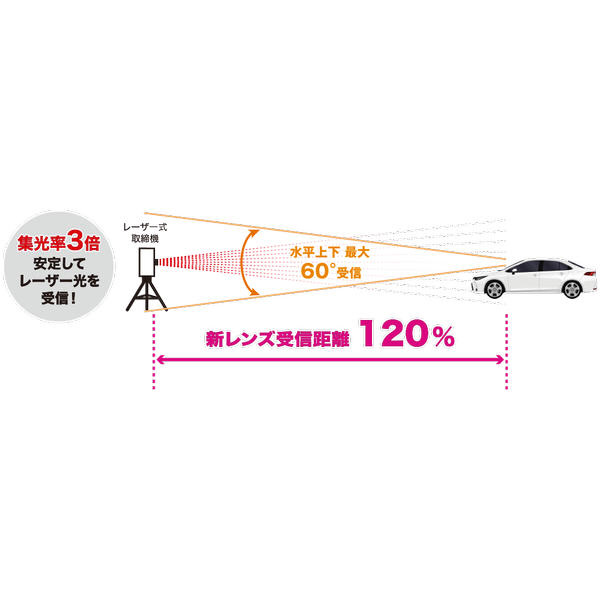 ※レーザー受信部と取締機のレーザー光源を結んだ直線状に遮蔽物が存在すると受信できません。