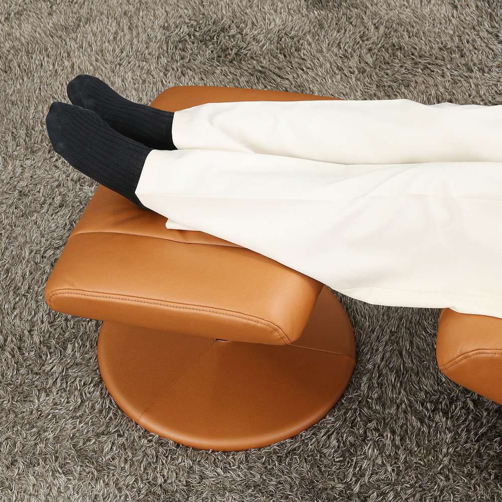十分に厚みのあるオットマンを使って足先までしっかりサポートします。