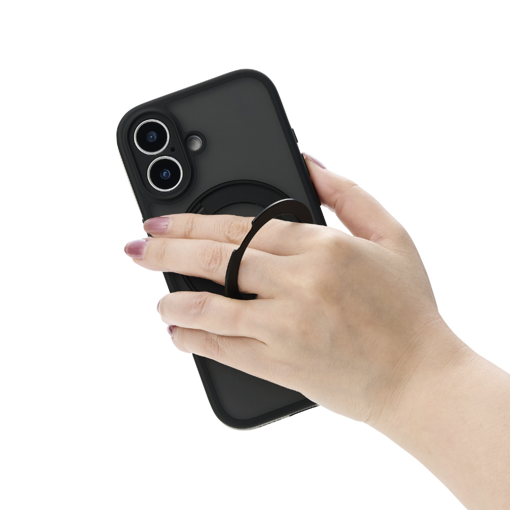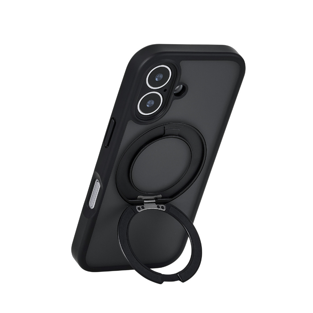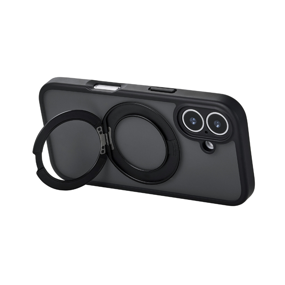 iPhone 17 ケース ハイブリッド カバー 衝撃吸収 MAGKEEP 磁力吸着ワイヤレス充電対応 回転式スタンド付 ブラック PM-A25AMGSTKMBK