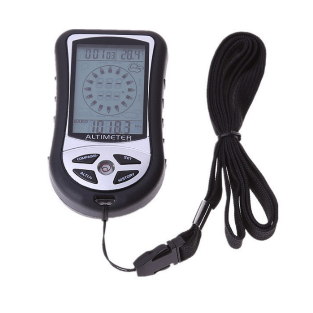 コンパス、温度計、気圧計、デジタル高度計、天気予報、時間表示、カレンダーの多機能搭載のデジタルコンパス