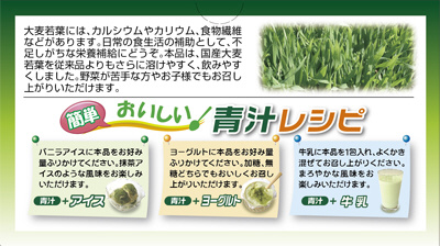 国産大麦若葉を従来品よりも更に溶けやすく飲みやすくしました。