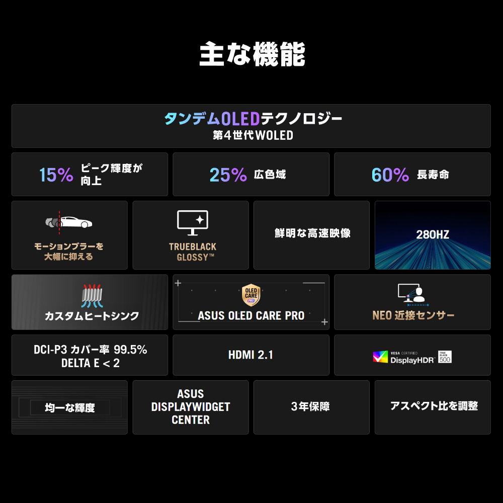 リフレッシュレート280Hz、応答速度0.03msの26.5インチ QHD(2560×1440)TrueBlack Glossy WOLEDゲーミングモニター