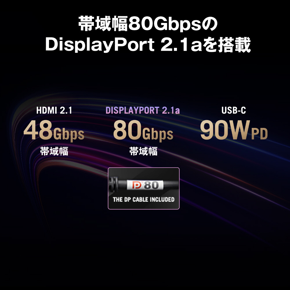 AMD FreeSync Premium ProテクノロジーとNVIDIA G-SYNCに対応しており、低遅延でティアリングのない非常に滑らかな映像をお楽しみいただけます。