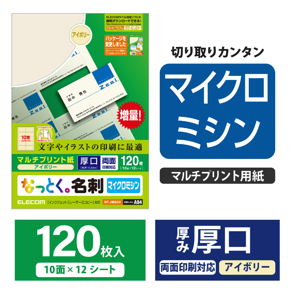 なっとく。名刺 120枚 (A4サイズ 10面×12シート) MT-JMN2IVシリーズ アイボリー MT-JMN2IV