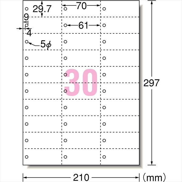 マルチカード 単語カード穴あきタイプ(A4サイズ・30面・5シート) 白無地 51163