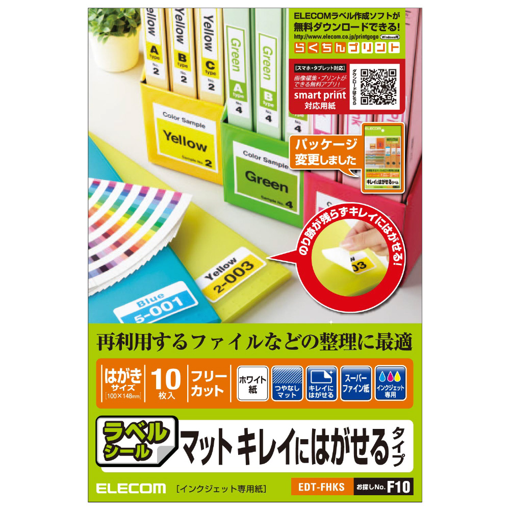 フリーカットラベル ハイグレード・再剥離タイプ EDT-FHKS ホワイト [はがき /10シート /1面 /マット]