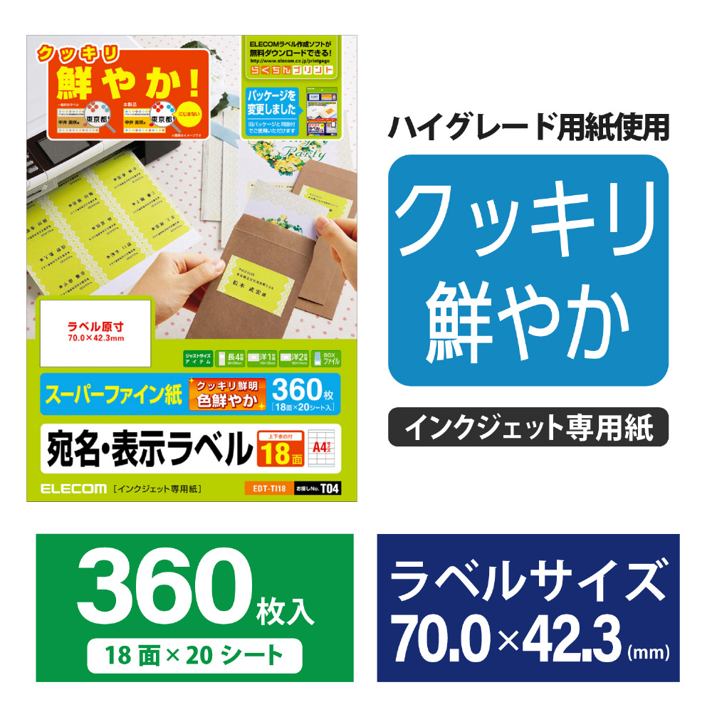 さくさくラベル クッキリ EDT-TI18 ホワイト [A4 /20シート /18面 /マット]