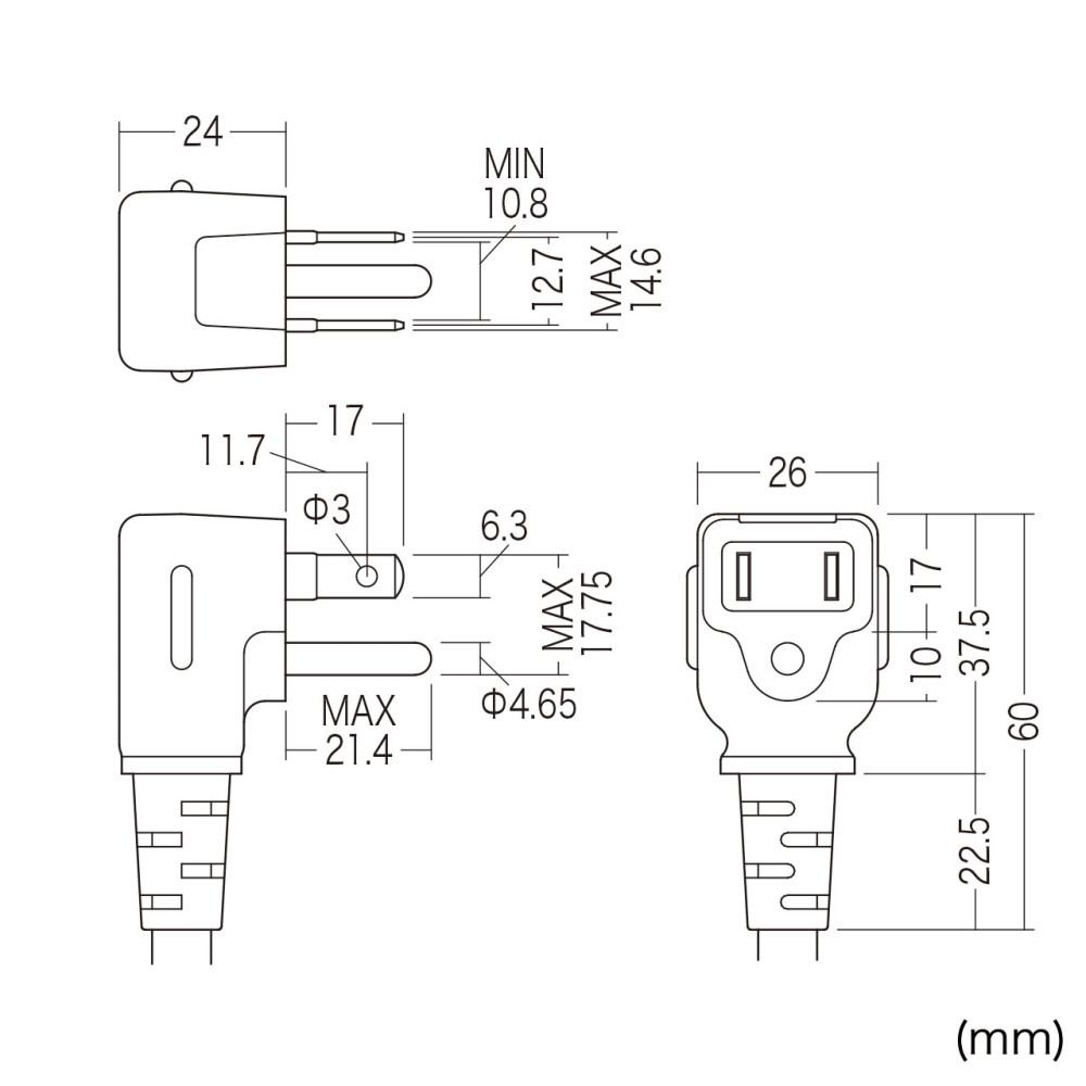 ■プラグ仕様: 3P(絶縁キャップ付き)
