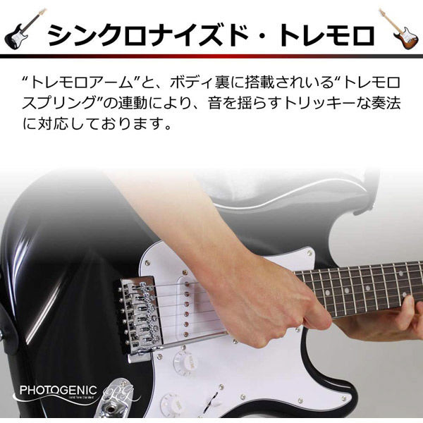 エレキギター ストラトキャスタータイプ メイプル指板 PhotoGenic(フォトジェニック) ブラック ST-180M/BK(S.C)