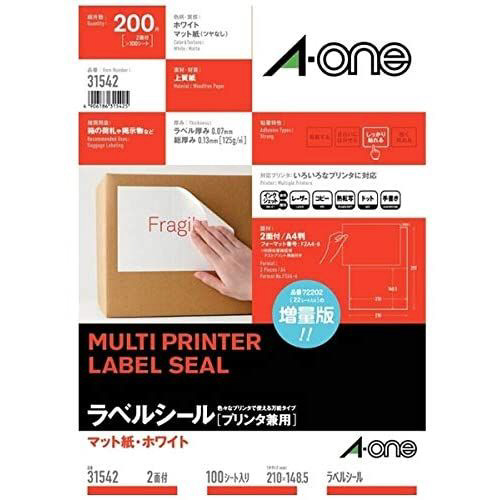 ラベルシール プリンタ兼用 ホワイト 31542 [A4 /100シート /2面 /マット]