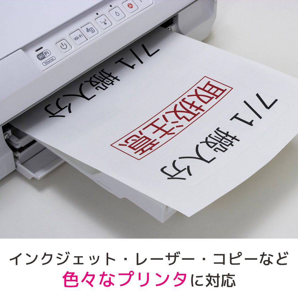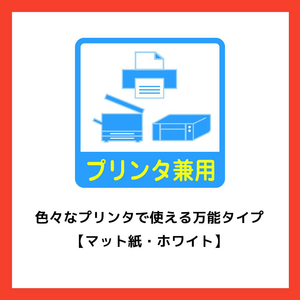 対応プリンタ インクジェットプリンタ(染料系インク・顔料系インクに対応)、カラーレーザー・モノクロレーザー、カラーコピー機、熱転写(カラーレーザー・モノクロレーザーに対応)、ドットインパクトプリンタ、手書き