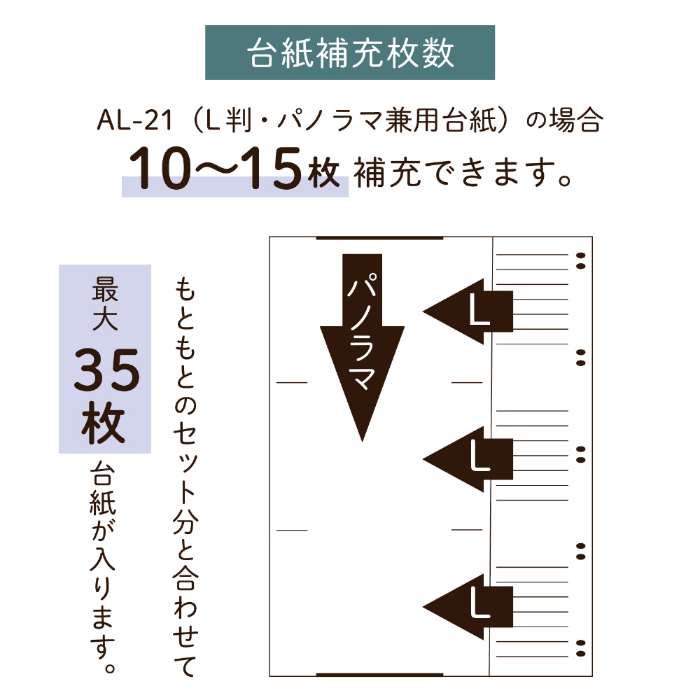 ・写真収容枚数: E・Lサイズ120枚、またはパノラマ40枚