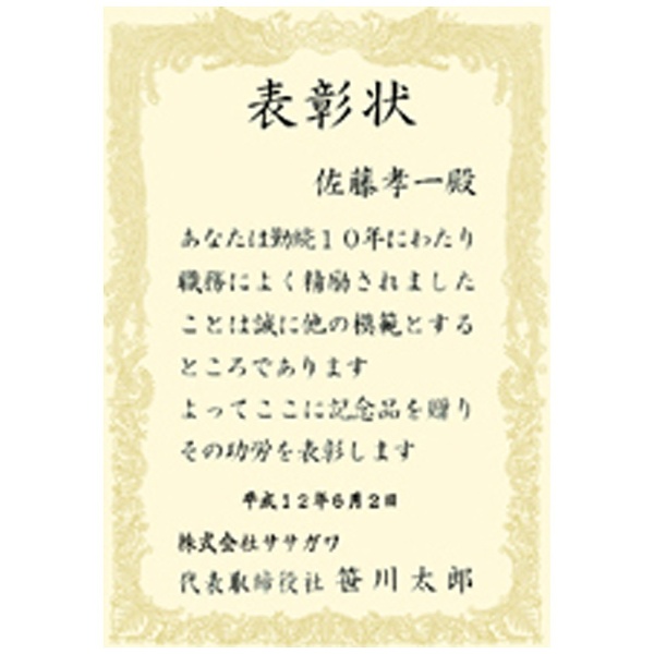 ■賞状用紙にふさわしい気品と深みのある風格が縁飾りに表現されています。