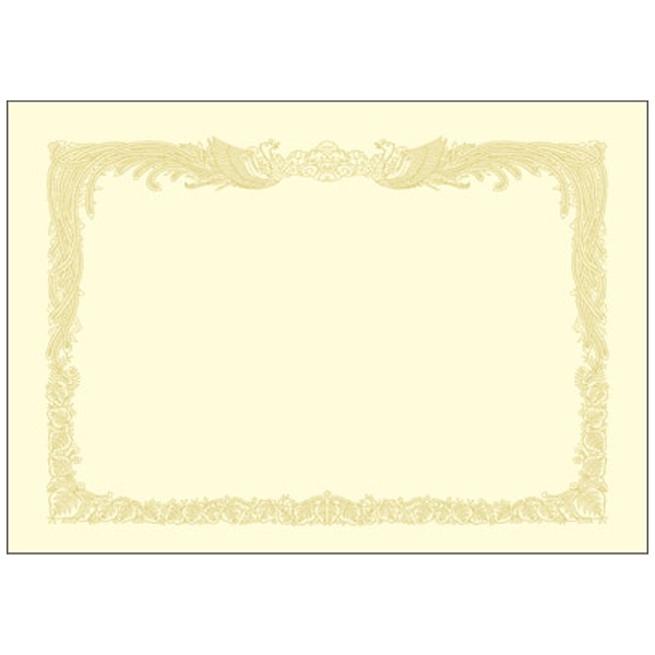 美しい金色の輝きを保つ特殊印刷をした賞状です。新たな印刷技法を用いているのでレーザープリンタやその他の出力機に対応しています。賞状用紙にふさわしい気品と深みのある風格が縁飾りに表現されています。従来からの手書きや通常印刷(凸版やオフセット)にも使用できます。高級感あふれるクリームタイプ。縦書き用(横型)です。業務用100枚仕立て。