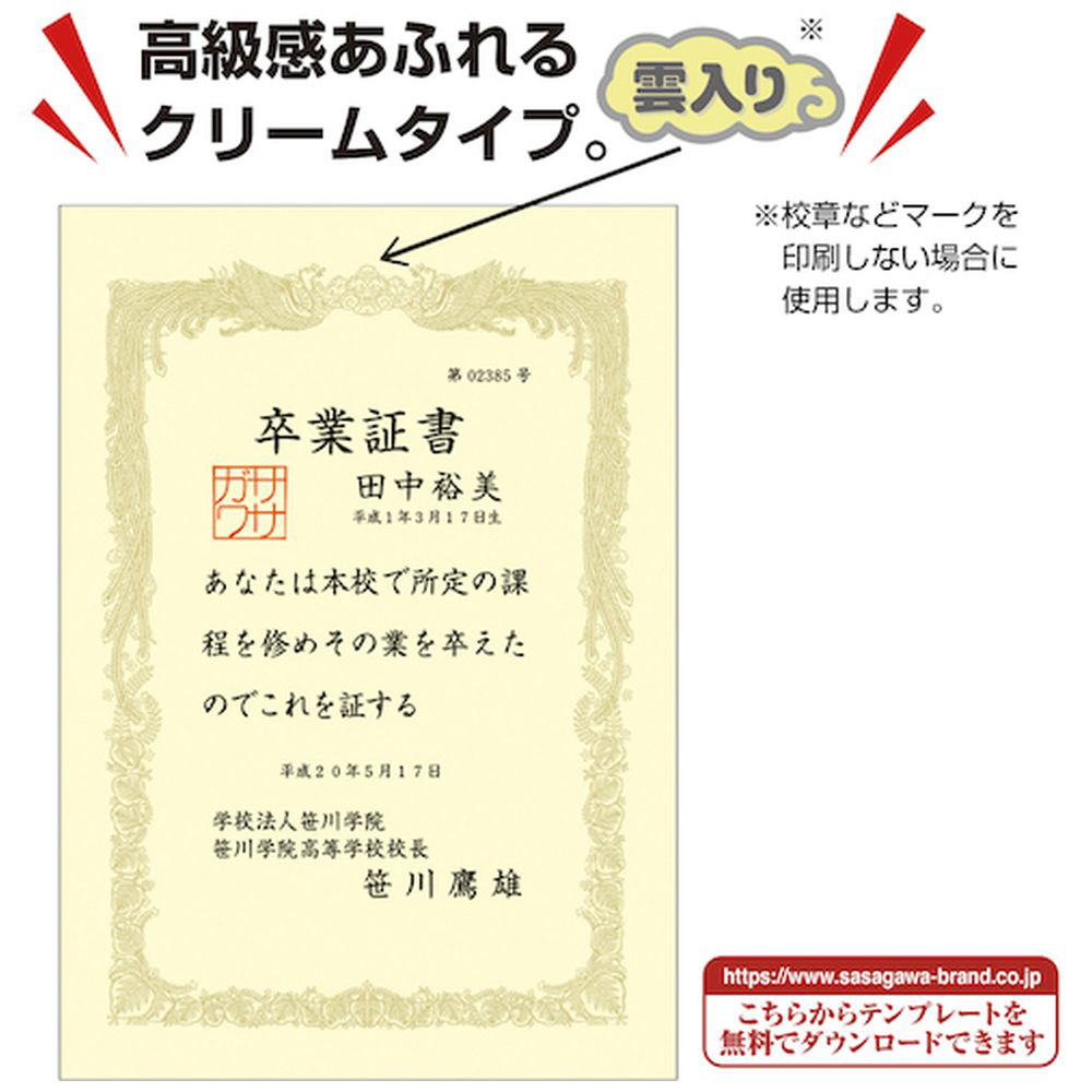 OA賞状用紙 B4判 横書用 クリーム 10-1178
