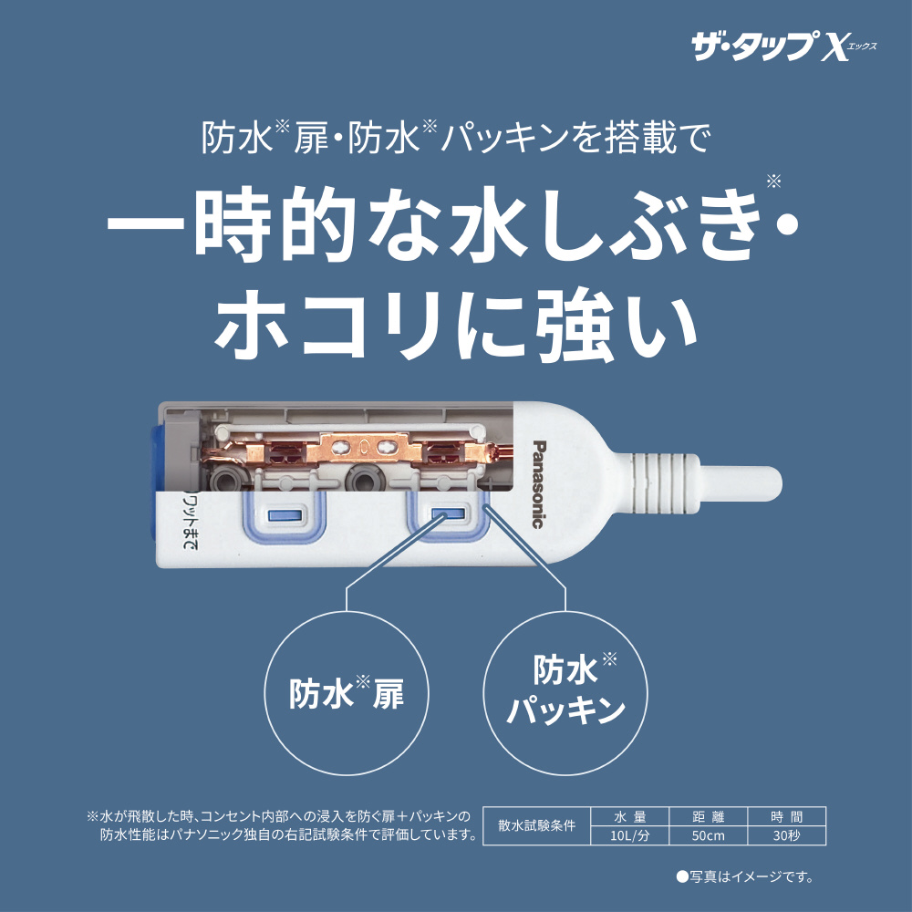 「ザ・タップX」にセーフティ&エコの「個別防水スイッチ付」新登場。