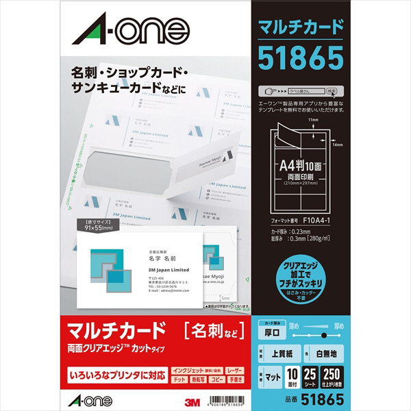 マルチカード 名刺 250枚 (A4サイズ 10面×25シート) 白無地 51865 白無地 51865