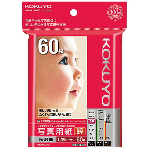 インクジェットプリンター用 写真用紙 光沢紙・厚手 (L判・60枚) KJ-G13L-60 KJ-G13L-60
