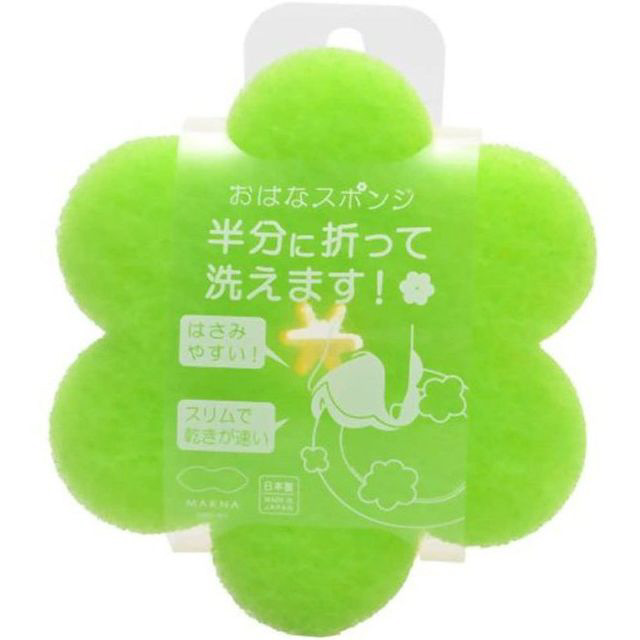 お花型のかわいいスポンジは、半分に折りやすく、スリムな形状で洗い物がしやすいのが特徴です。