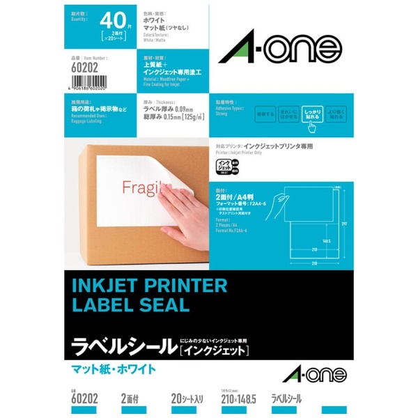 ラベルシール インクジェット ホワイト 60202 [A4 /20シート /2面 /マット]