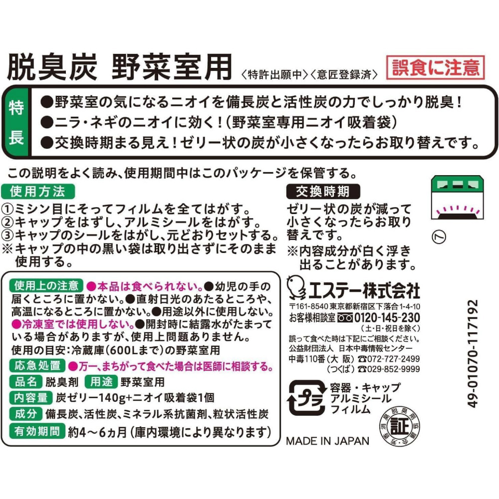 脱臭炭 野菜室用 140g +ニオイ吸着袋 [冷蔵庫用 脱臭剤]